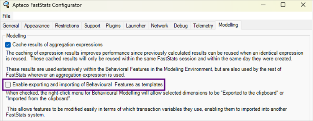 Behavioural modelling templates must be enabled by an administrator using the FastStats Configurator before the option is visible in the user interface.