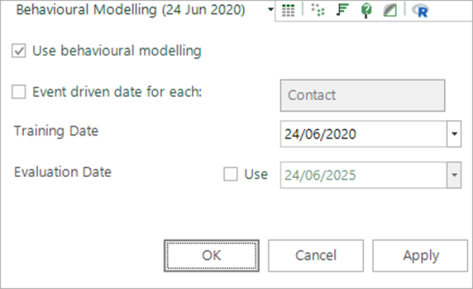 Before running the model, you should set the training date to reflect the transaction history that you want to analyse.
