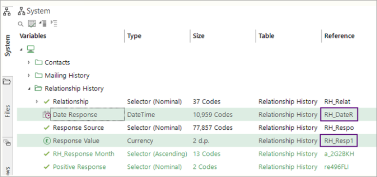 Log into the second system and, as the tables and variables used to conduct the initial behavioural modelling, identify the names of the person and transaction tables, and of the transaction date and value variables.
