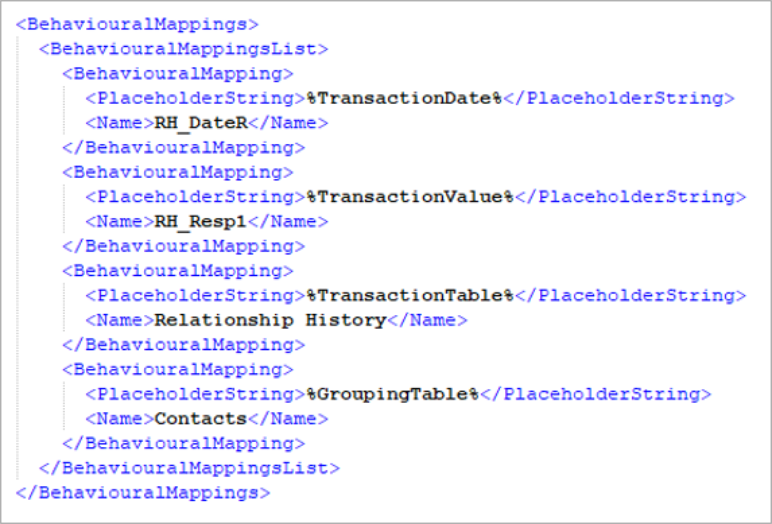 The bottom section of the template should not be edited. It gives the definitions of the behavioural features in terms of the placeholders, instead of specific variable and table names. For example: