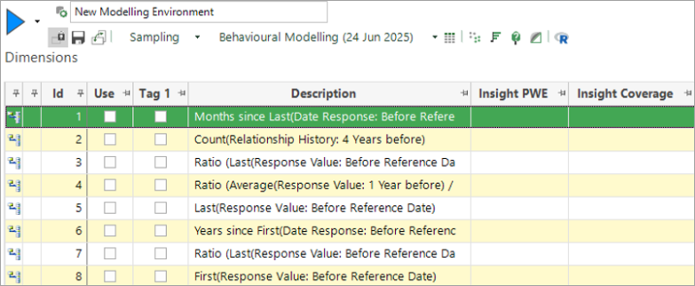 As with all the behavioural modelling menus, you now get the option to add or discard these new dimensions: